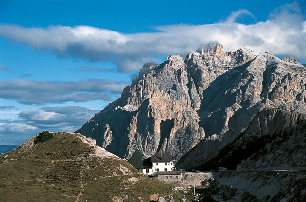 Il rifugio è situato sul passo di collegamento fra Cortina d'Ampezzo e la Val badia, alla base del Monte Lagazuoi (m. 2780) e Sass di Stria (m. 2477).